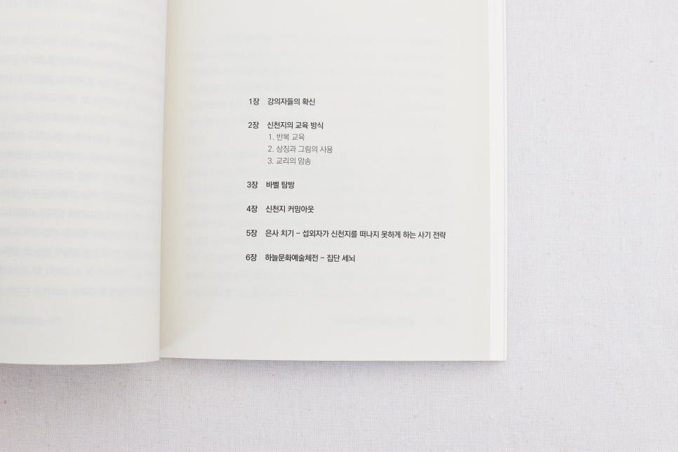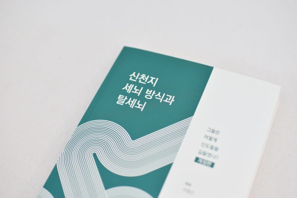 짙은 청록색과 흰색. 두 가지 색으로 표지 전체를 정리했습니다. 배경에는 추상적인 선 패턴을 깔고, 제목 타이포그래피를 정면에 배치했습니다. 『신천지 세뇌 방식과 탈세뇌』. 종교 단체의 심리 통제 방식과 그로부터 벗어나는 과정을 다룬 서적입니다. 내용이 무겁습니다. 표지도 그에 맞게 갔습니다. 장식을 거두고, 글자 하나하나가 또렷하게 읽히는 구조로 정리했습니다. 책 표지에서 색은 첫 말입니다. 디자이너가 고른 청록색 하나가 독자의 첫인상을 만들고, 책의 무게를 전달합니다. 색이 조용할수록 글자가 강해집니다.